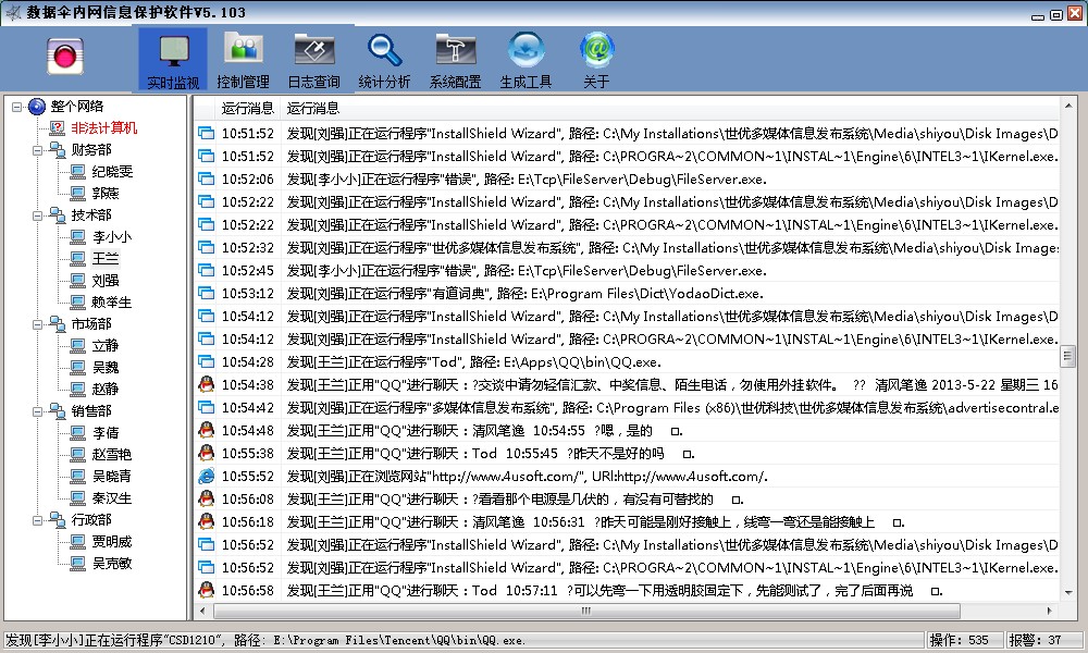 数据伞电脑监控软件用来防止公司机密资料通过U盘和互联网非法外泄,并规范员工上班行为的信息安全监控软件。